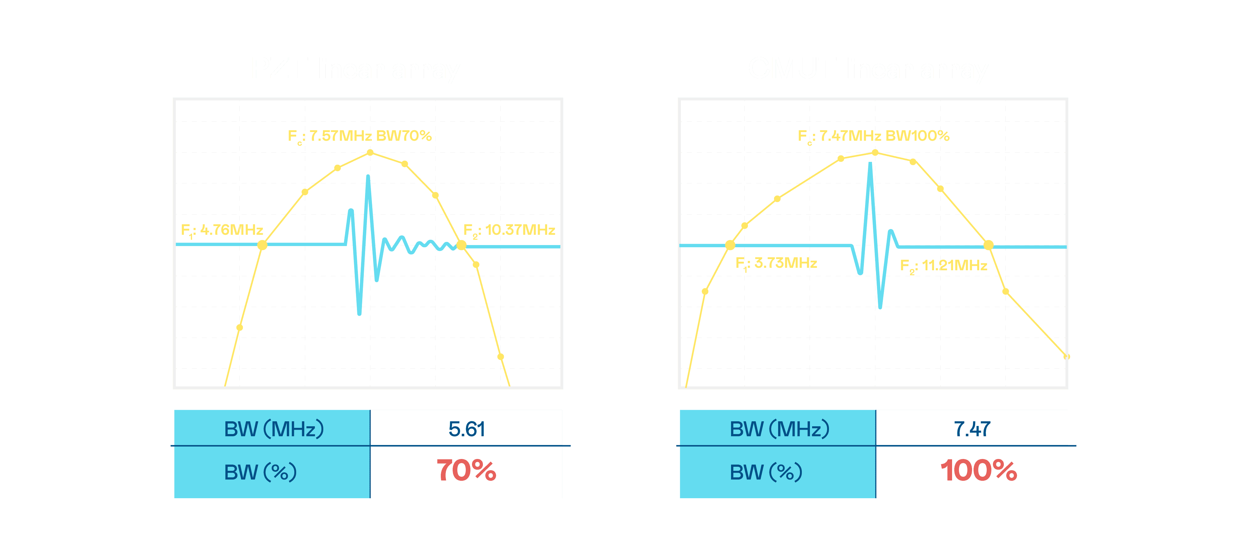 超音波影像的解析度高低,,首先取决于探头能发出的讯号频宽。。龙门国际 CMUT 可提供高清晰的超音波讯号,,,提供高频宽、、高灵敏度、、影像纹理细节更高的超音波影像,,协助医护人员缩短影像判读时间及利用精准的医疗影像进行诊断。。